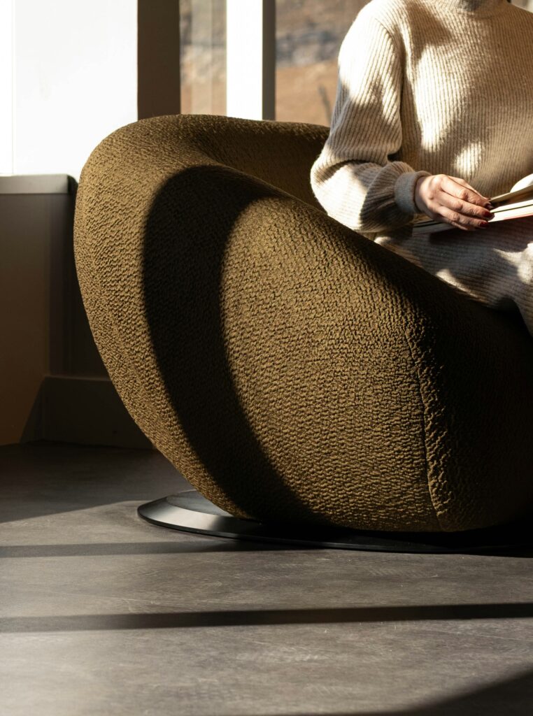 - Investissez dans un beau fauteuil. Le fauteuil est la pièce maîtresse de votre coin lecture — c’est sur lui que tout repose. Optez pour un modèle profond et enveloppant dans un tissu noble comme le velours, le lin ou la bouclette. Les fauteuils papasan sont idéal et doter d’un très bon confort. Côté couleurs, misez sur des teintes tendance comme le vert sauge, le terracotta ou le beige sable pour un résultat intemporel.